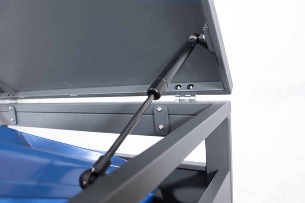 De containerberging is gemaakt van 0,8mm dik gegalvaniseerd staal. Dit zorgt voor maximale stevigheid en beschermt jouw container tegen weer en wind. Het materiaal is roestbestendig en vraagt nauwelijks onderhoud. Dankzij de twee soft close gasveren en het nylon touw opent de deksel soepel mee met de container. Extra handig voor dagelijks gebruik. Bij levering ontvang je een sleutel voor veilige afsluiting.