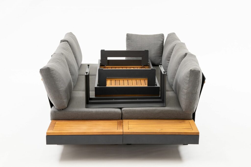 De Emerald tuinset dient met beide banken volledig tegen elkaar aan te staan, zie ook de laatste foto.