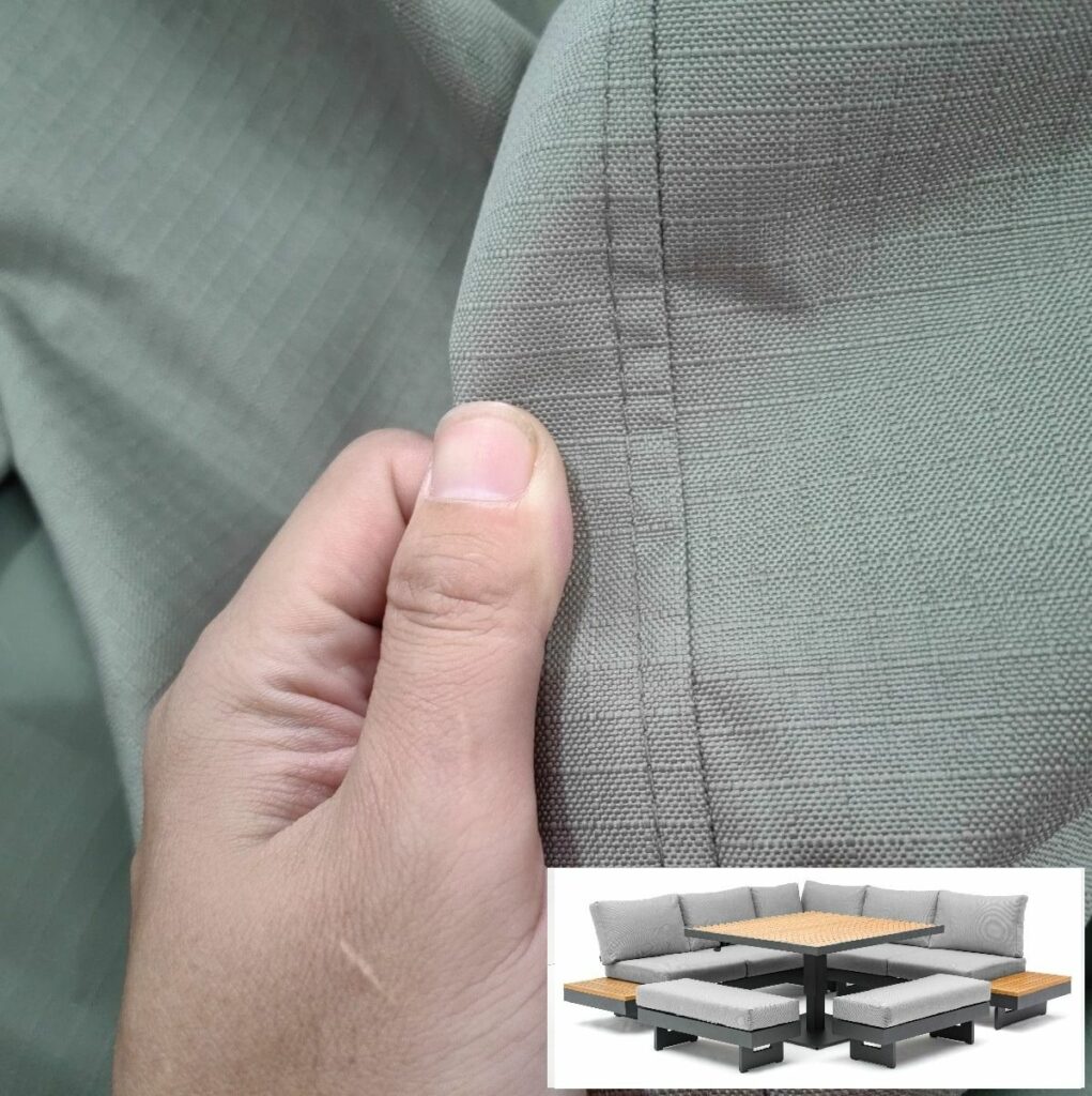 De hoekbank dient met beide delen recht tegen elkaar (U-vorm) aan te staan, zie ook de laatste foto.