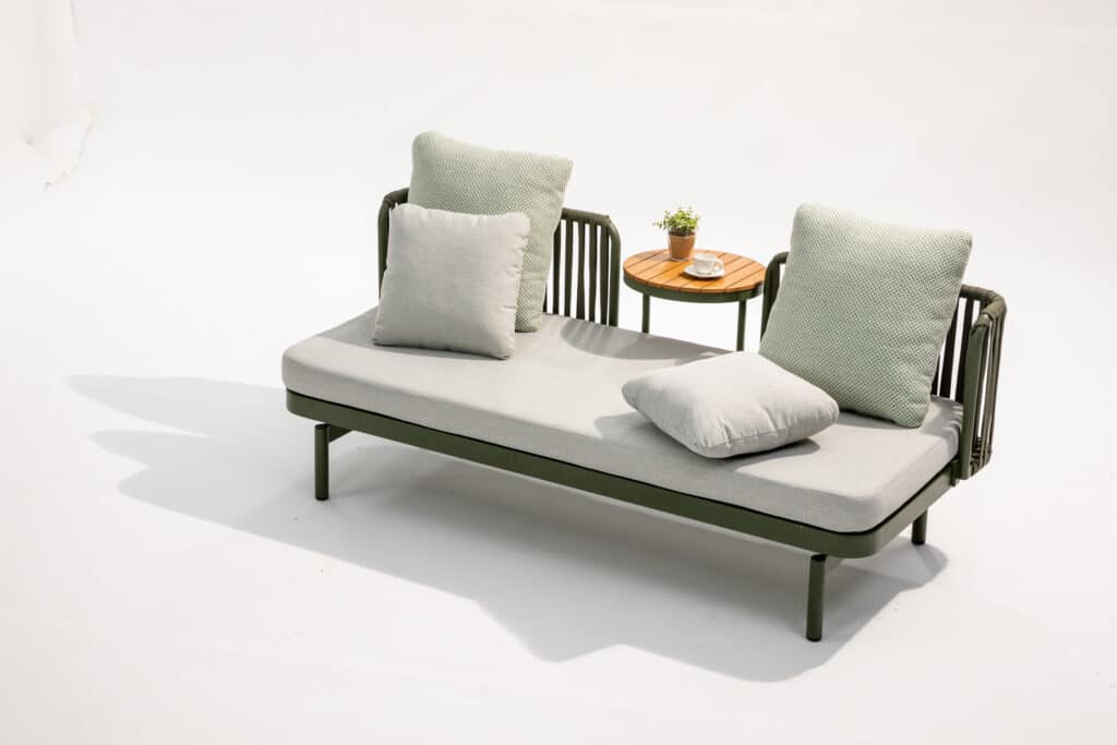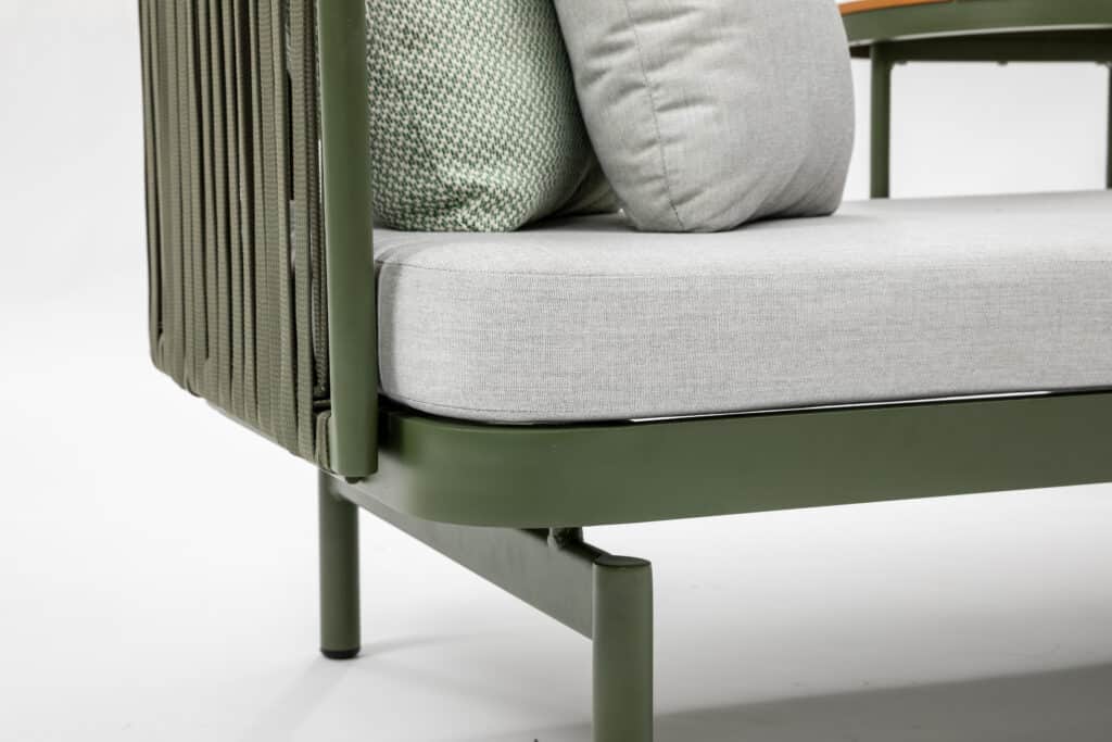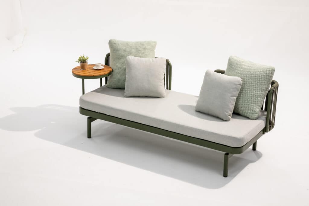 Het frame is gemaakt van gepoedercoat aluminium in combinatie met FSC Acacia hardhout. Dit maakt de bank licht, roestvrij en geschikt om het hele jaar buiten te laten staan. De polyester kussens zijn comfortabel, waterafstotend en makkelijk schoon te houden. Klaar om te genieten van relaxte zomermomenten? Bestel de Relaxbank Isabel nu en creëer jouw favoriete loungeplek op het balkon of terras.