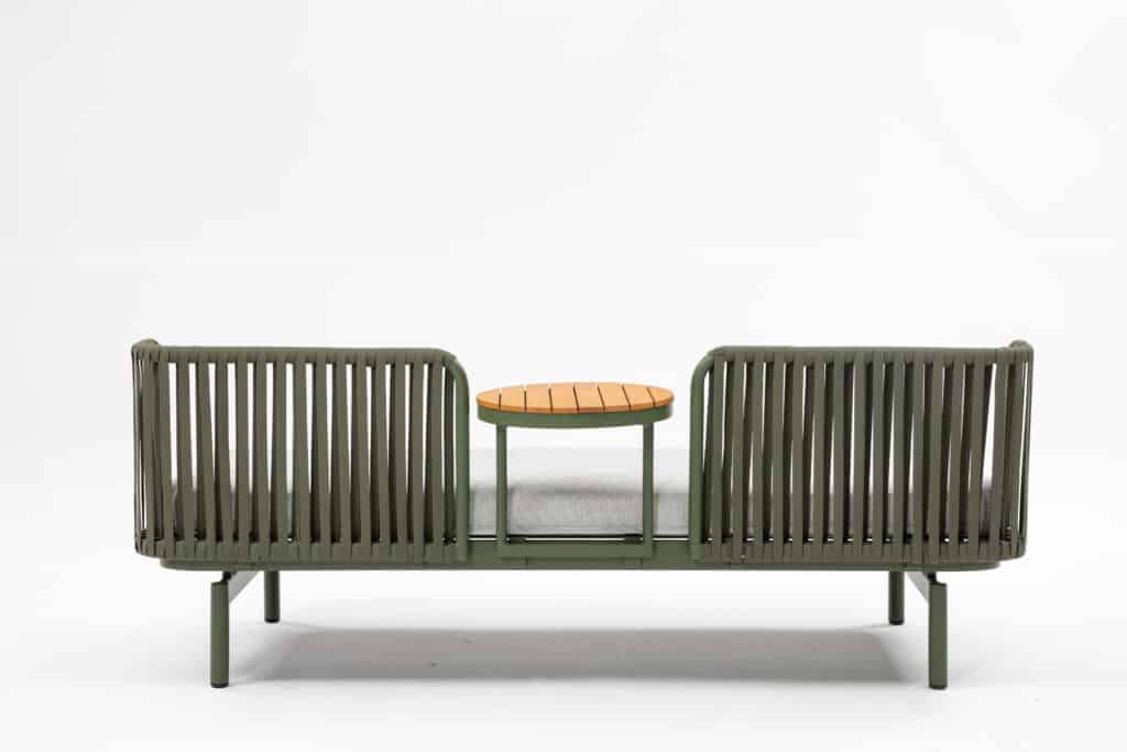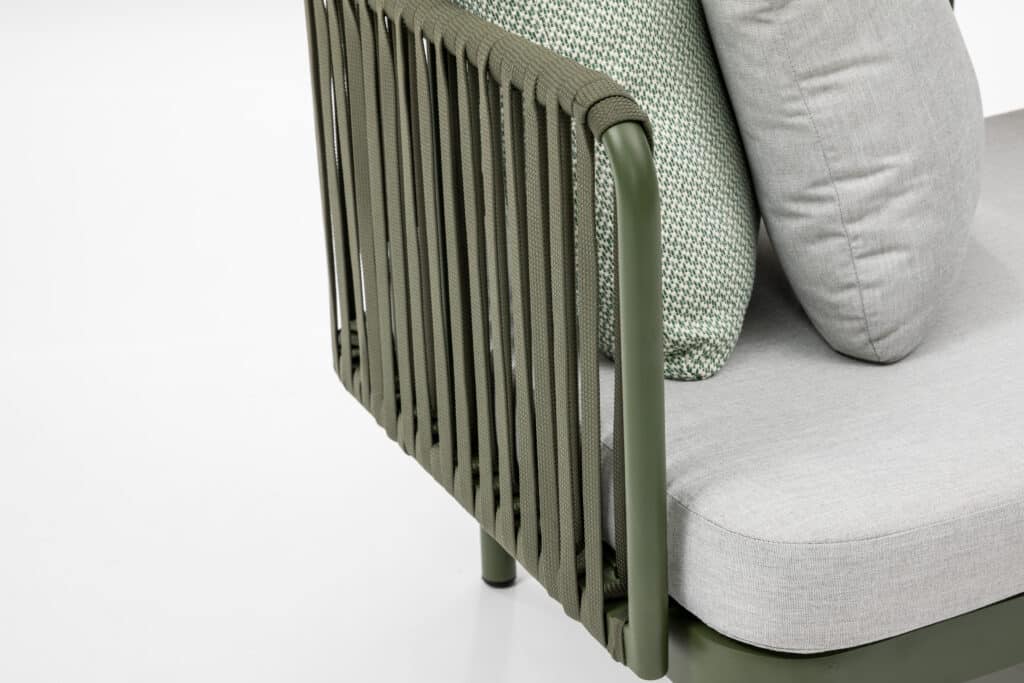 Het 10cm dikke zitkussen zorgt voor heerlijk zitcomfort met een zithoogte van 41cm. De vier bijgeleverde rugkussens (2x 50x50cm en 2x 40x40cm) bieden extra ondersteuning. De rugleuningen zijn voorzien van prachtig geweven touw van ongeveer 2cm breed, wat zorgt voor een luxe look. Zowel de rugleuningen als het tafeltje kunnen overal rondom op het frame geplaatst worden. Hierdoor is het een multifunctionele bank die je naar wens kunt samenstellen. Het handige tafeltje met een diameter van 40cm is perfect voor je drankje of boek.