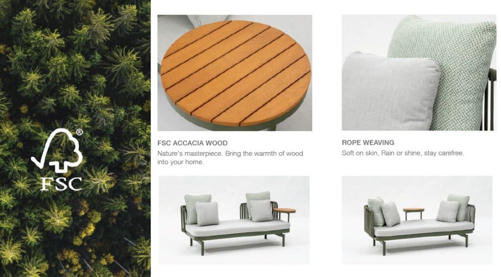| Materiaal | Gepoedercoat Aluminium, FSC Acacia hardhout |