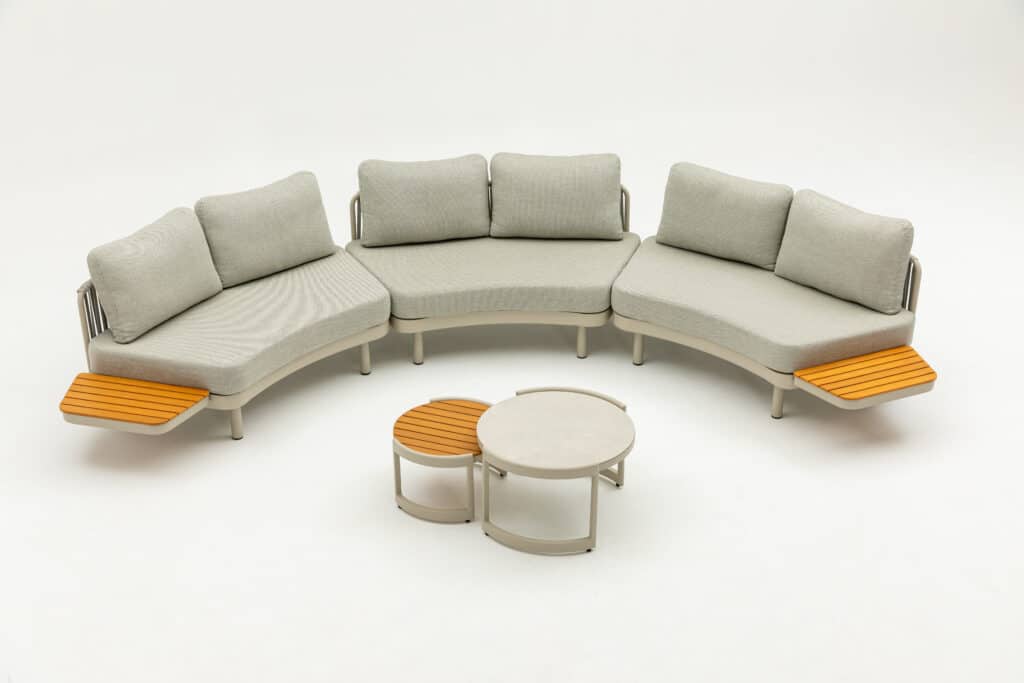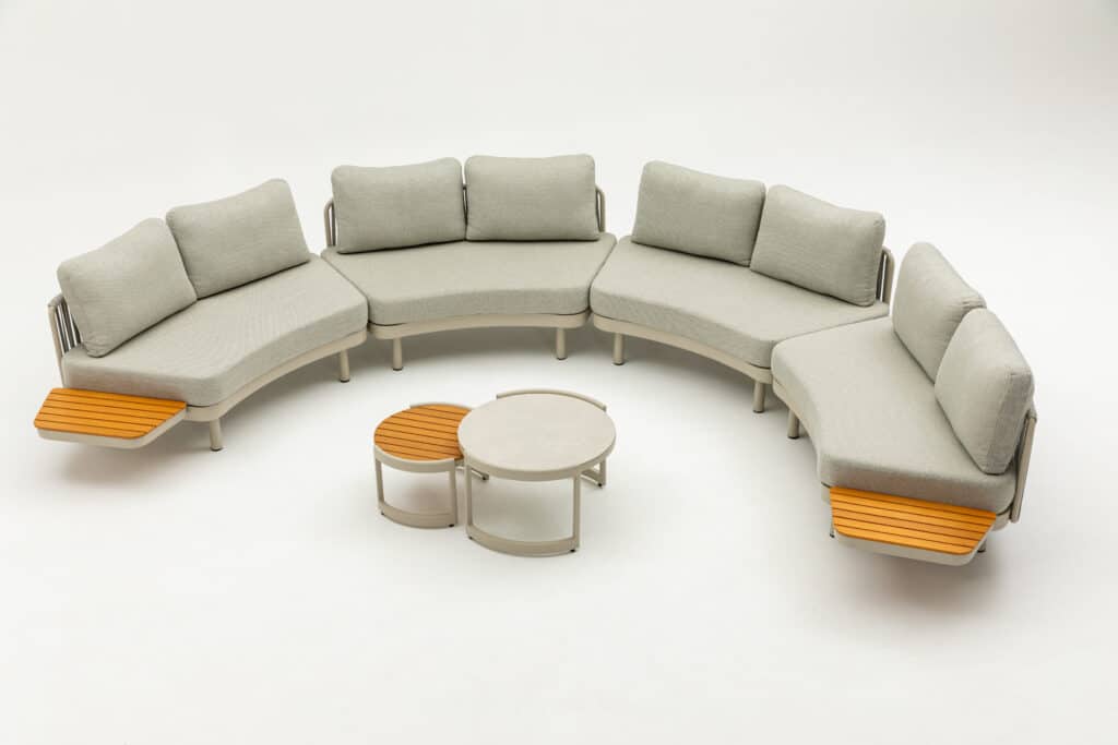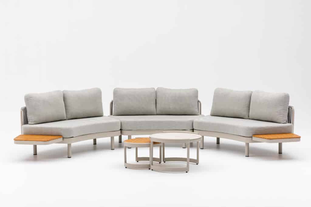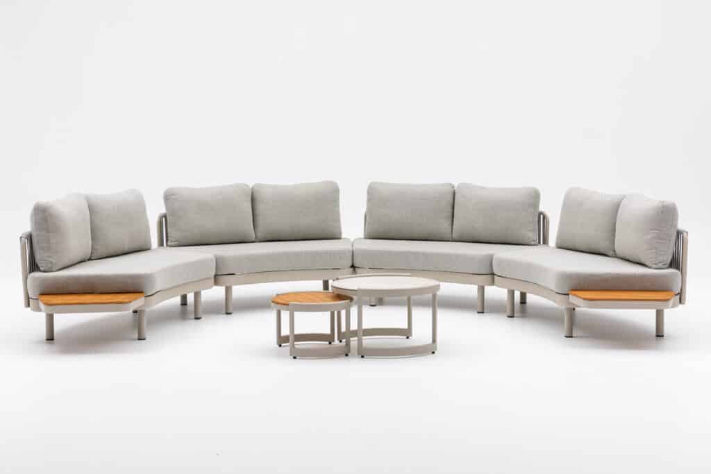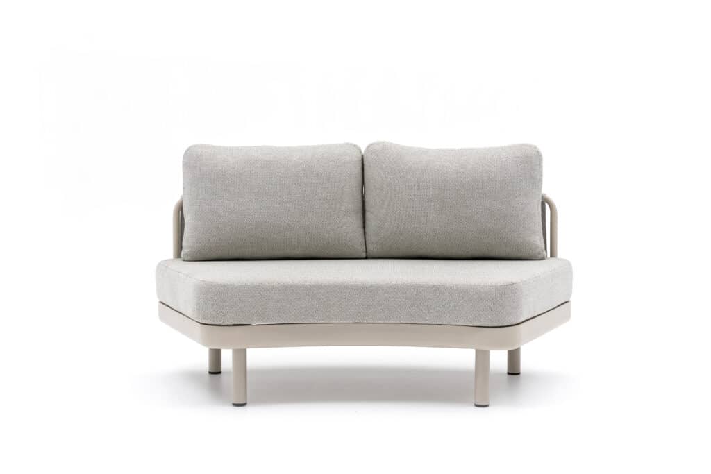 De Loungeset Nanda Bankje Rond brengt sfeer en comfort naar jouw achtertuin in prachtige strakke ronde vormen. Dit leuke multifunctionele tweezits loungebankje met afmetingen van 155x87x68cm kan eindeloos gecombineerd worden met de bijpassende Loungeset Lounza of Loungeset Sardinia. Beide sets kunnen uitgebreid worden met dit 2-persoons Nanda bankje. De kleuren, afmetingen en materialen zijn exact hetzelfde, waardoor je diverse combinaties kunt maken. Bekijk de laatste foto voor de verschillende mogelijkheden.