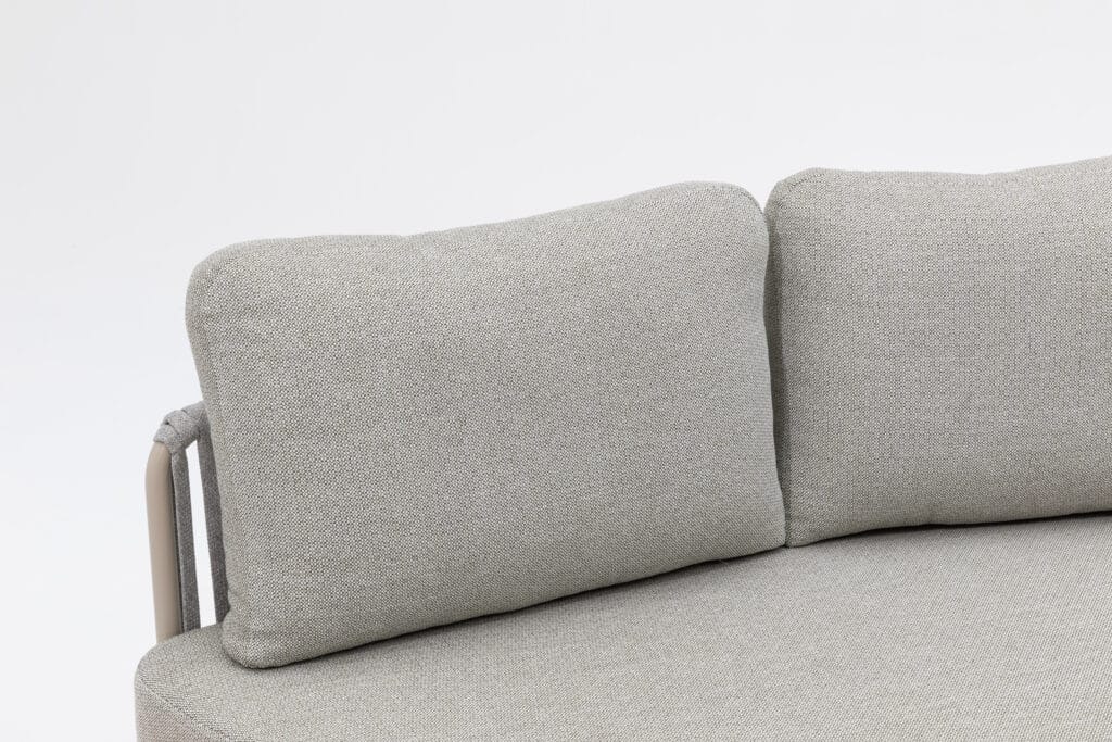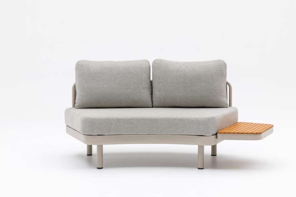 De zitkussens zijn maar liefst 15cm dik, waardoor je echt optimaal comfortabel zit. Ze zijn bekleed met waterafstotend Olefin, zodat regenwater simpelweg afparelt en je snel weer van je stoel bank lounge kunt genieten. De set wordt compleet gemaakt met een grote salontafel van 71x66x41cm, een kleine salontafel van 54x49x33cm en een handig afneembaar houten tafeltje van 64x33x9cm. Dit bijzettafeltje kun je rondom de hele set plaatsen of ophangen waar jij wilt. De standaard 2-zits bankjes zijn optioneel ook extra bij te bestellen zonder het houten tafeltje, zodat je de set eindeloos kunt uitbreiden. De tafelbladen van sintered stone zijn extreem sterk en het dikke aluminium frame kan het hele jaar door buiten blijven staan.