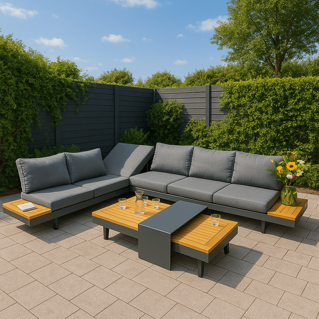 Zoek je een luxe hoekbank voor het hele gezin? De Premium Loungeset Emerald Hoekbank Verstelbaar Tuinset 6-persoons Aluminium/Hout 43171 is gemaakt voor wie zijn buitenruimte wil omtoveren tot een luxe leefomgeving. Deze royale 4-delige set, ook wel bekend als de Barbados Loungeset, biedt plaats aan zes personen en is al jaren zeer populair in Nederland en België. De set bestaat uit twee ruime 3-zits banken van 245x78x70cm, een salontafel van 140x70x28cm en een handige bijzettafel van 80x40x36cm.