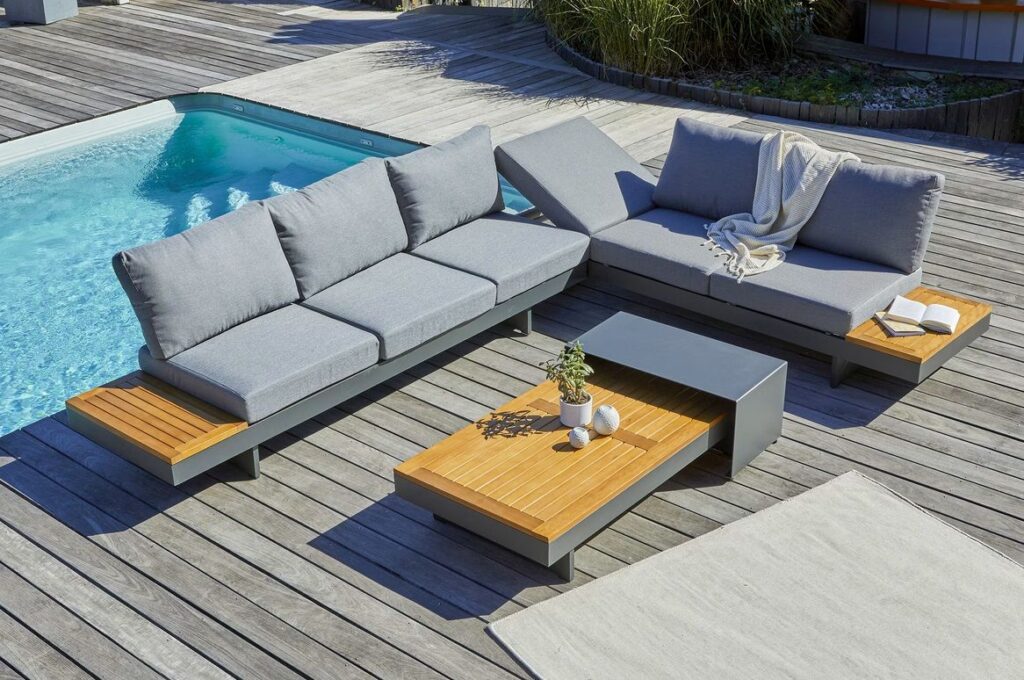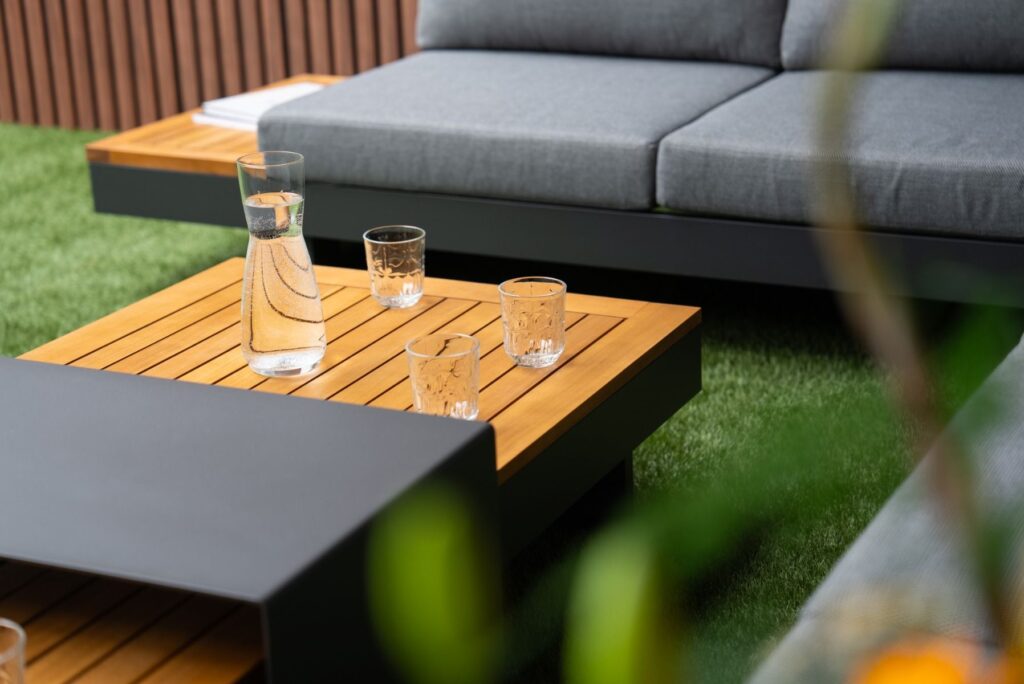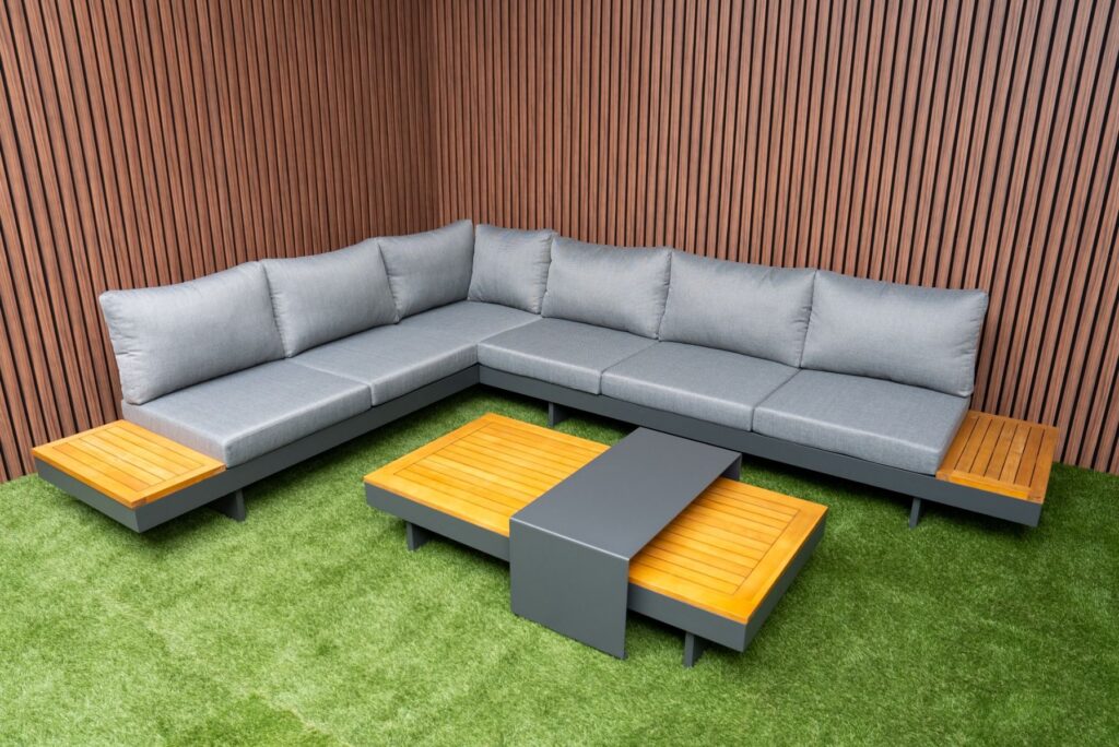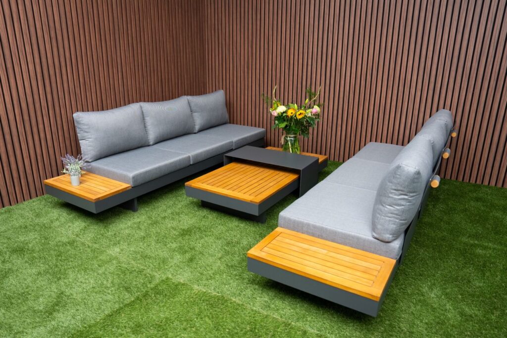 | Materiaal | Gepoedercoat aluminium, FSC Acacia HardHout, Olefin stof |