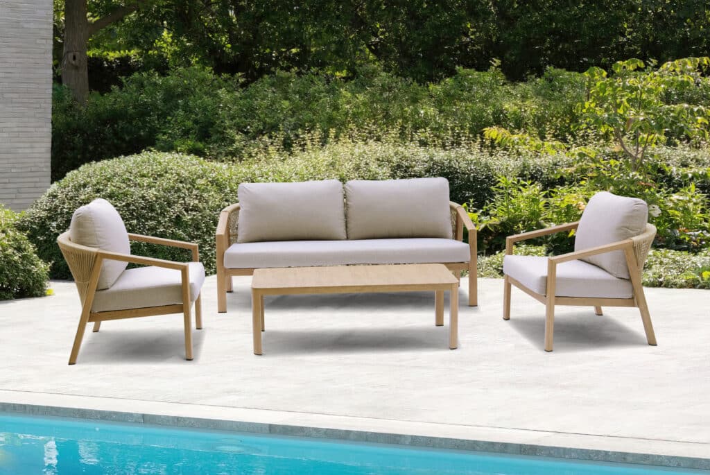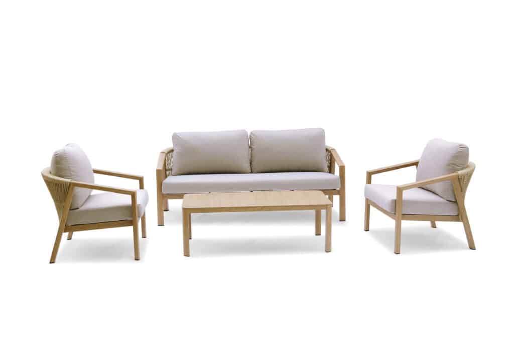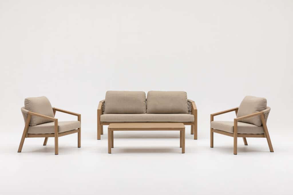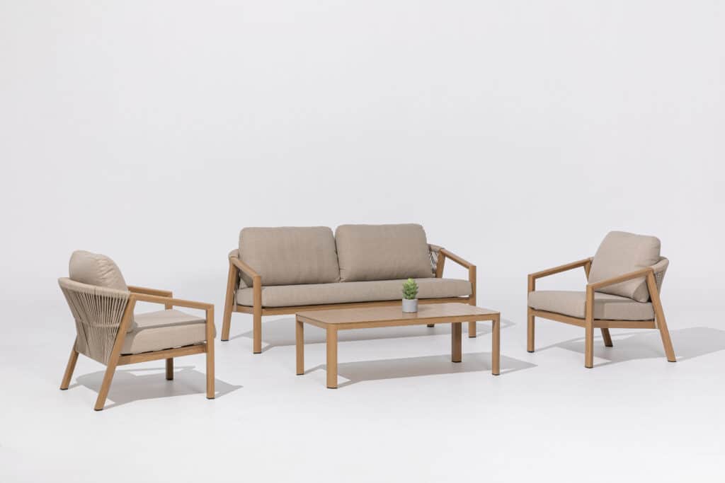 Het gepoedercoat aluminium frame is onderhoudsvrij en roestbestendig. De kleur van het frame is 100% gelijk aan alle andere tuinmeubelen op onze website in deze houtlook. Hierdoor combineer je de loungeset moeiteloos met eettafels, stoelen en fauteuils. Mix en match naar wens voor jouw perfecte buitenplek. Klaar om te genieten van luxe relaxmomenten? Bestel de Loungeset SenS-Line Sardinië nu en maak van jouw tuin een heerlijke relaxplek.