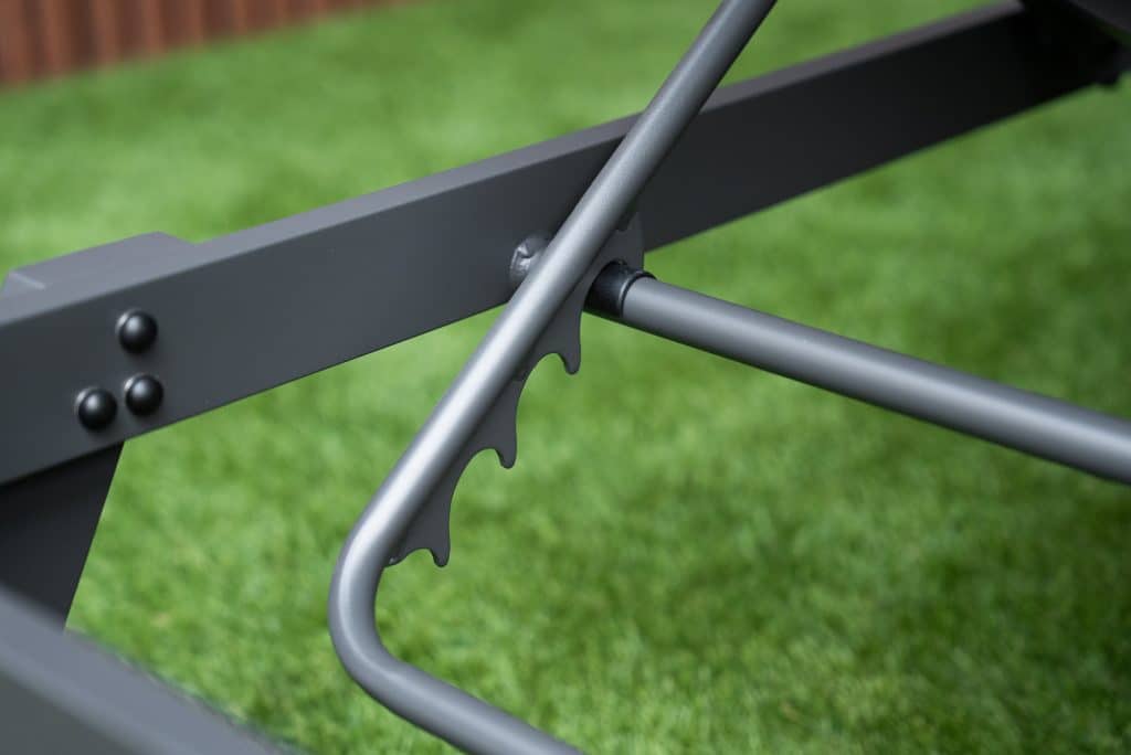 Dankzij de verstelbare rugleuning kies je eenvoudig de houding die het beste past bij jouw manier van ontspannen. Of dat nu lezen, zonnen of wegdromen is. Het hoogwaardige PVC textiel sluit zacht en comfortabel aan op het lichaam. Het robuuste aluminium zorgt voor langdurige stabiliteit en is roestvrij en onderhoudsarm. Dit ligbed is ontworpen om intensief buitengebruik moeiteloos te doorstaan. Zo geniet je zonder zorgen van een seizoen vol ontspanning in de open lucht.