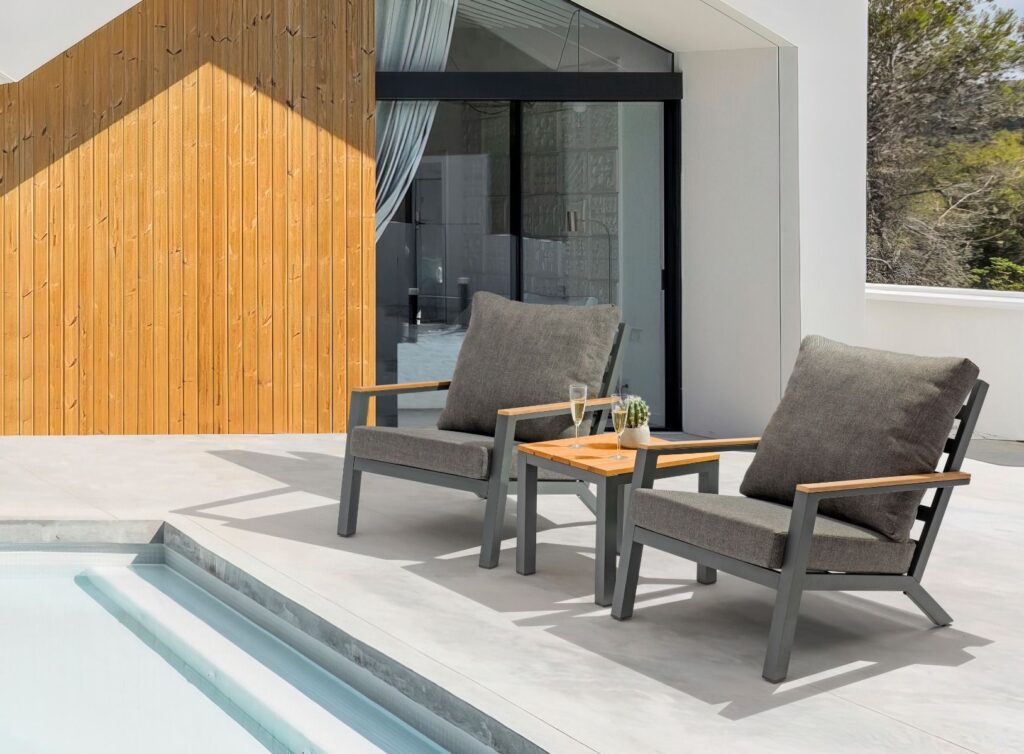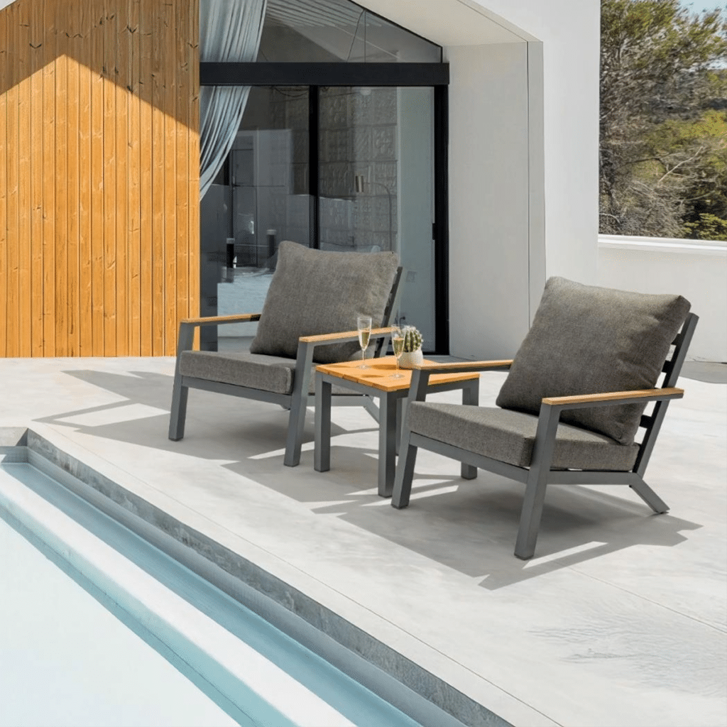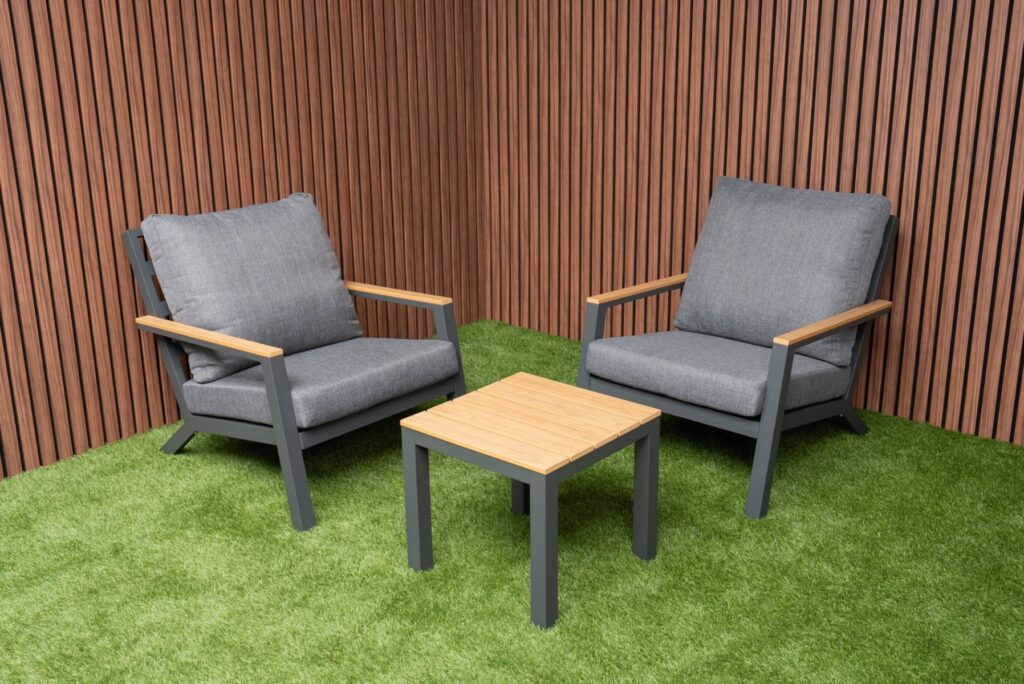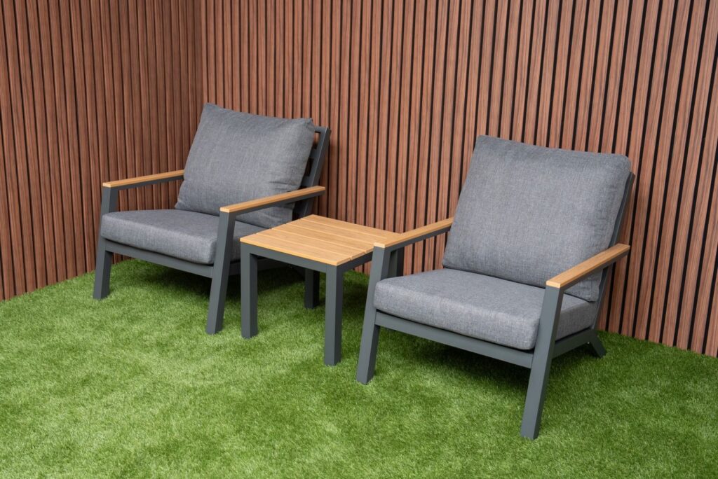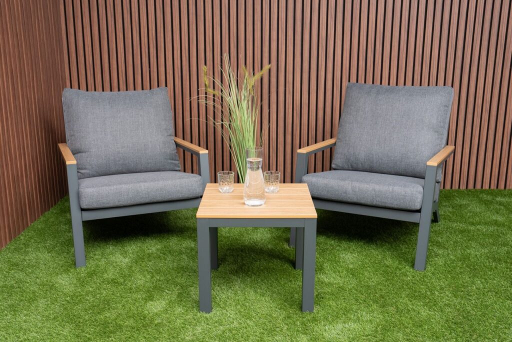 Bistro Balkon-set Capitol Lounge 2-stoelen & tafel Tuinset Antraciet/Hout – 19020