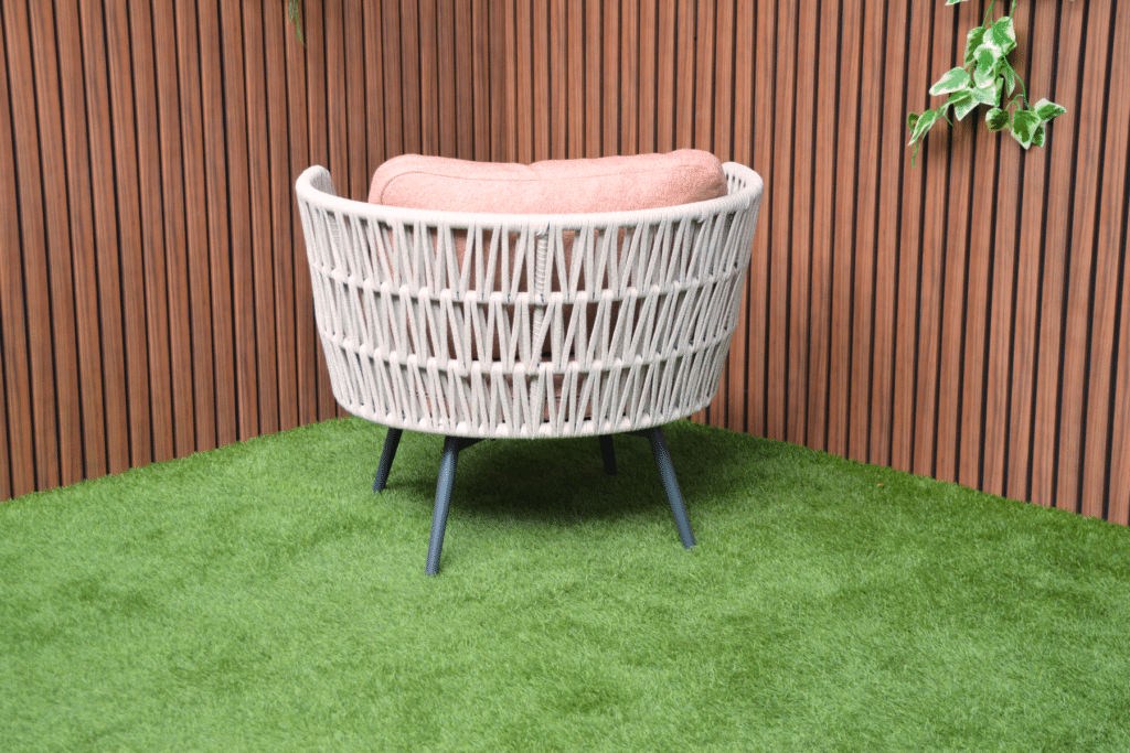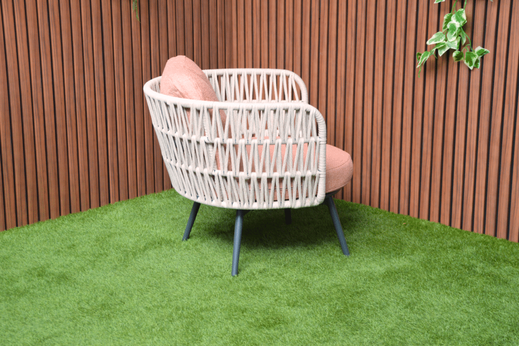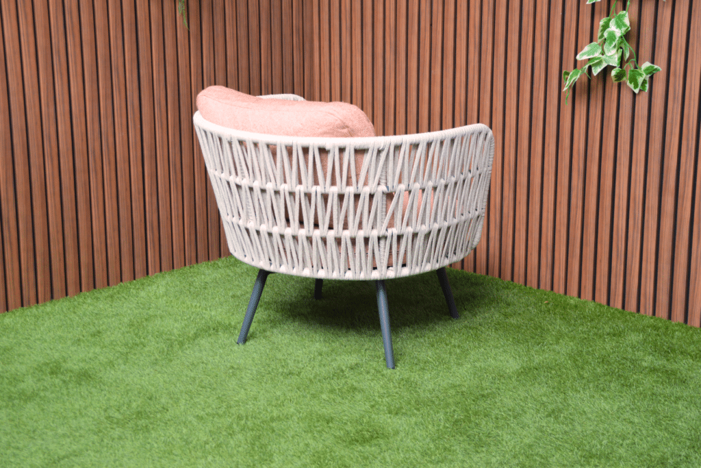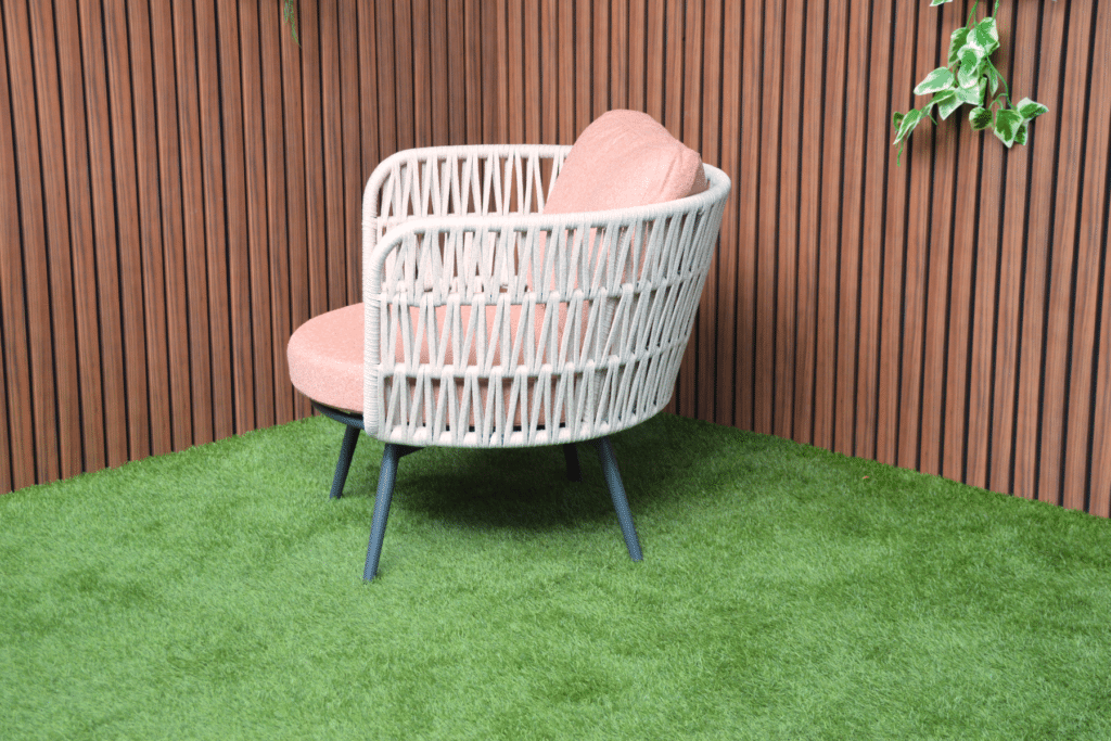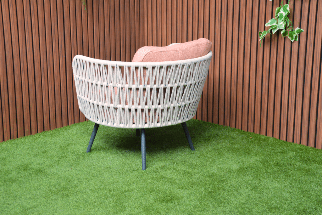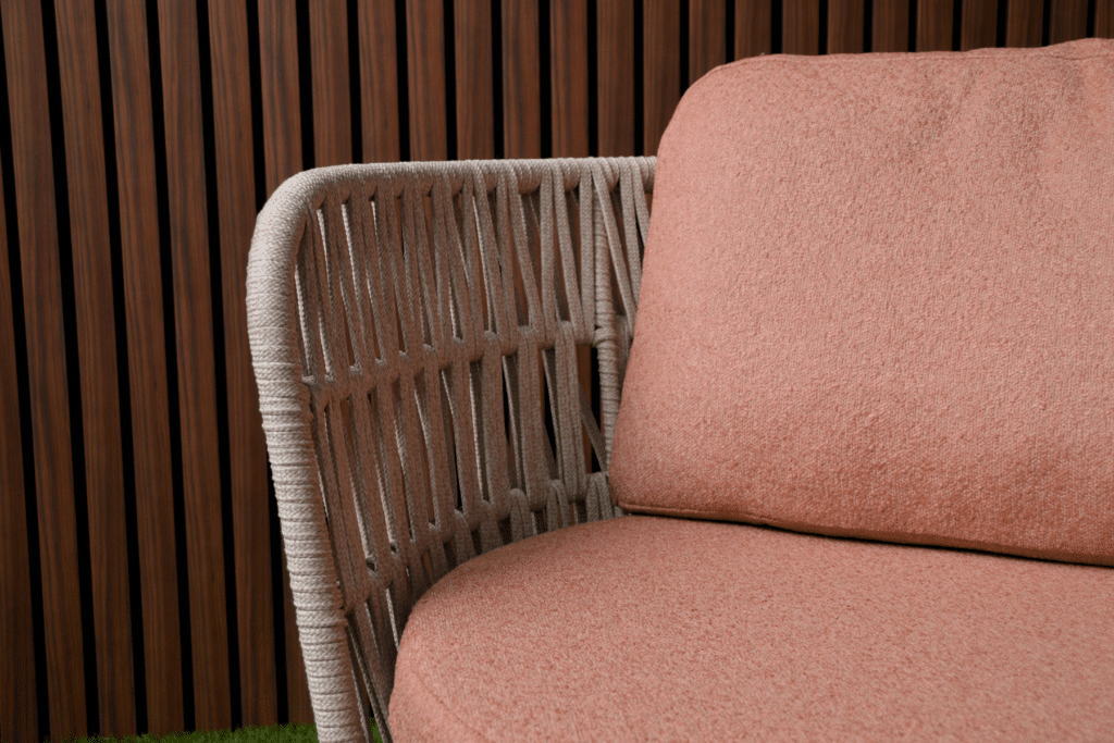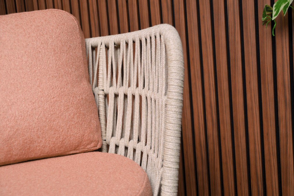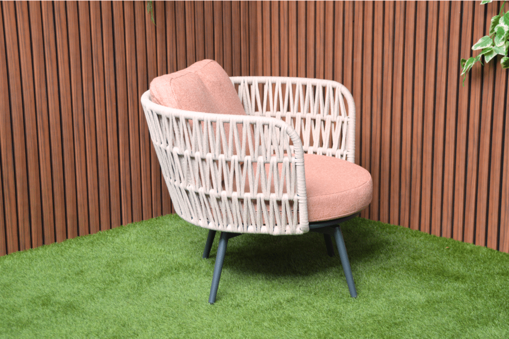 Creëer jouw heerlijke relaxplek met de Bistroset Sophia. Deze prachtige set bestaat uit 2 volledig draaibare stoelen en een bijpassend tafeltje. De ruime stoelen draaien 360 graden, zodat je moeiteloos kunt bewegen en alle kanten op kunt kijken. Het beige geweven touw van 14mm breed geeft de stoelen een natuurlijke, luxe uitstraling. In combinatie met de warm roze kussens en het antraciet frame ontstaat een moderne set die perfect past op elk balkon of terras.