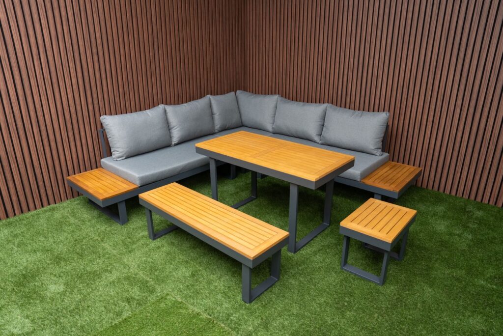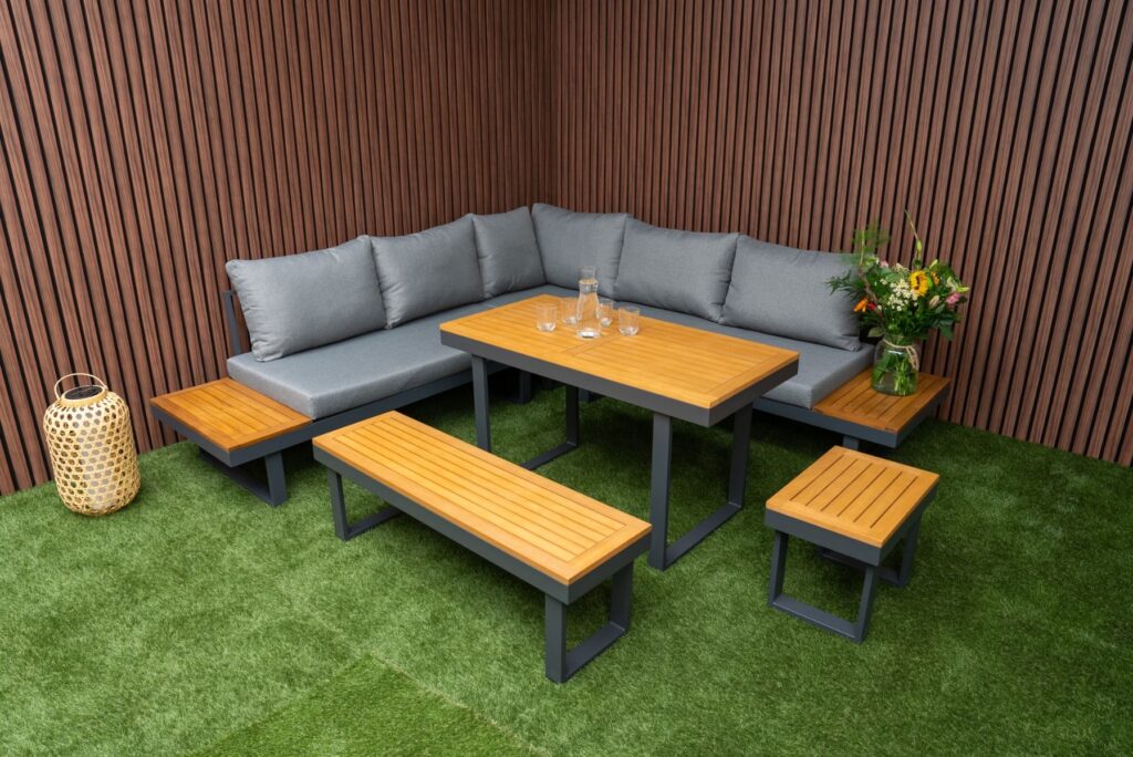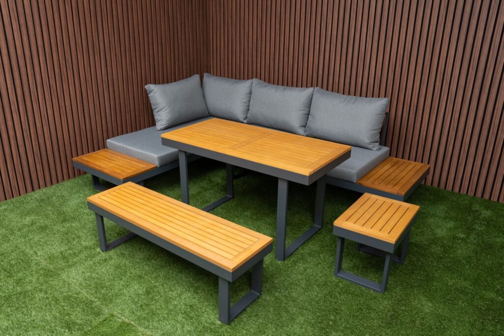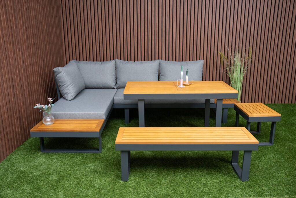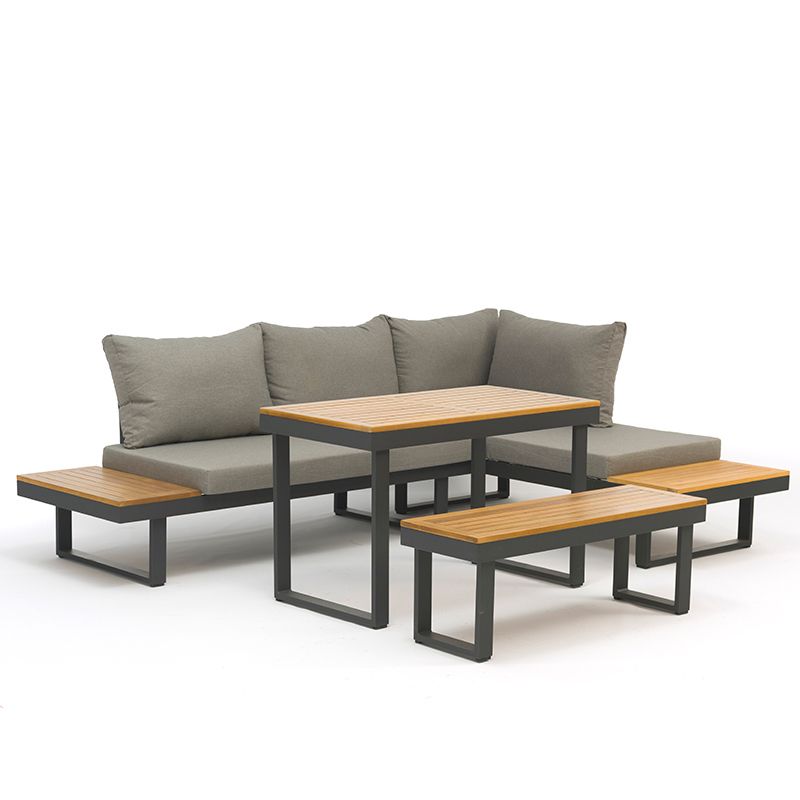 Loungeset SenS-Line Olympia Diningset Family Tuinset 5-delig Aluminium/Hout Hoekbank – 351311
