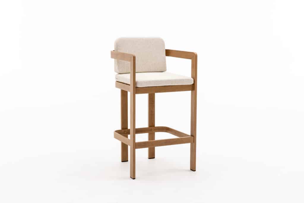 Geniet comfortabel van zomeravonden aan jouw bartafel met de Barstoel Santiago Aluminium Houtlook 34152. Deze stijlvolle barkruk is onderdeel van de zeer populaire Santiago serie en past perfect bij een modern buiten terras. Met afmetingen van 57cm breed, 58cm diep en 100cm hoog biedt deze barstoel voldoende zitcomfort. De zithoogte van 79cm inclusief comfortabel zit- en rugkussen sluit perfect aan bij bartafels. Dankzij de armleuningen op 100cm hoogte zit je ontspannen en comfortabel.