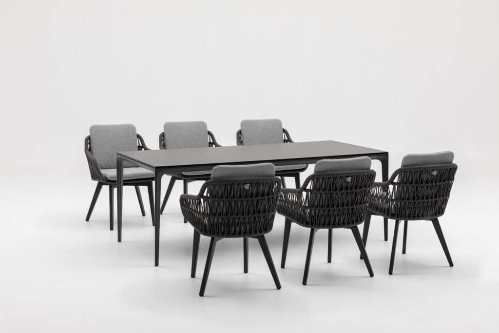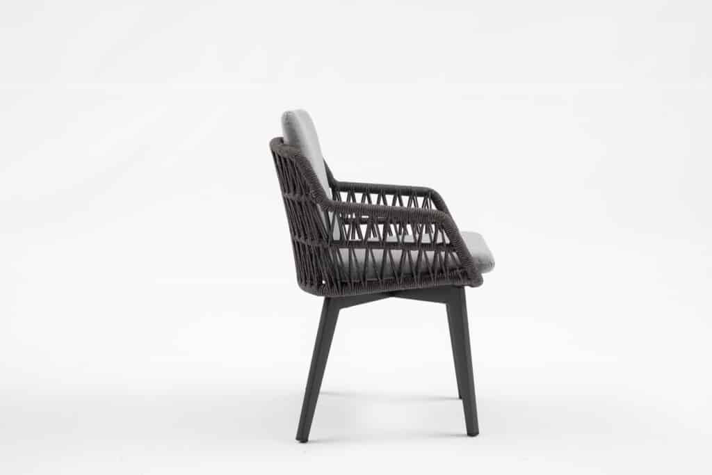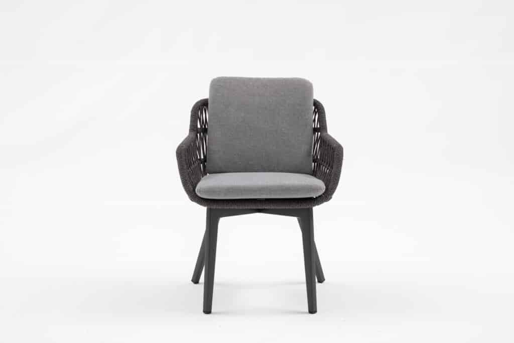 Ben je op zoek naar een stoere, moderne tuinstoel? De Dakota Antraciet is perfect voor wie houdt van een strakke look met heerlijk zitcomfort. Het gevlochten touw in de rugleuning zorgt voor een prachtige luxe uitstraling. In combinatie met het antraciete frame en de grijze kussens ontstaat een tijdloos design dat in elke tuin past.