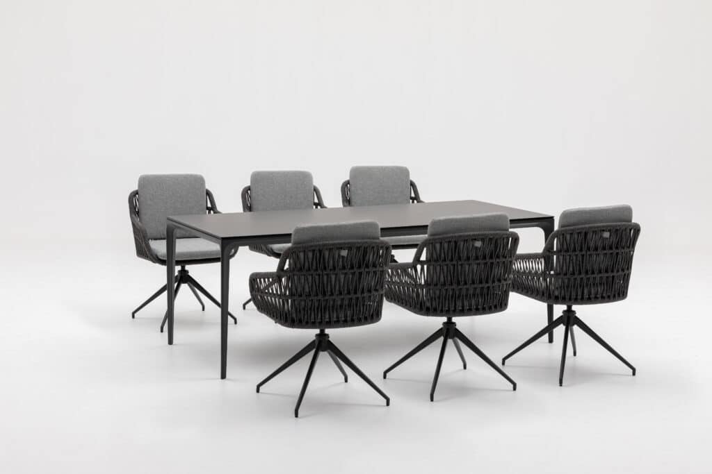 Wil je comfortabel zitten én gemakkelijk bewegen aan tafel? De Sevilla Antraciet maakt het mogelijk. Deze draaibare tuinstoel draait 360 graden, zodat je moeiteloos met vrienden kunt praten zonder het onderstel te verplaatsen. Wanneer je opstaat, draait de stoel automatisch terug naar de originele stand. Zo staan je stoelen altijd netjes aan tafel. Perfect om echt te genieten van gezellige zomeravonden.