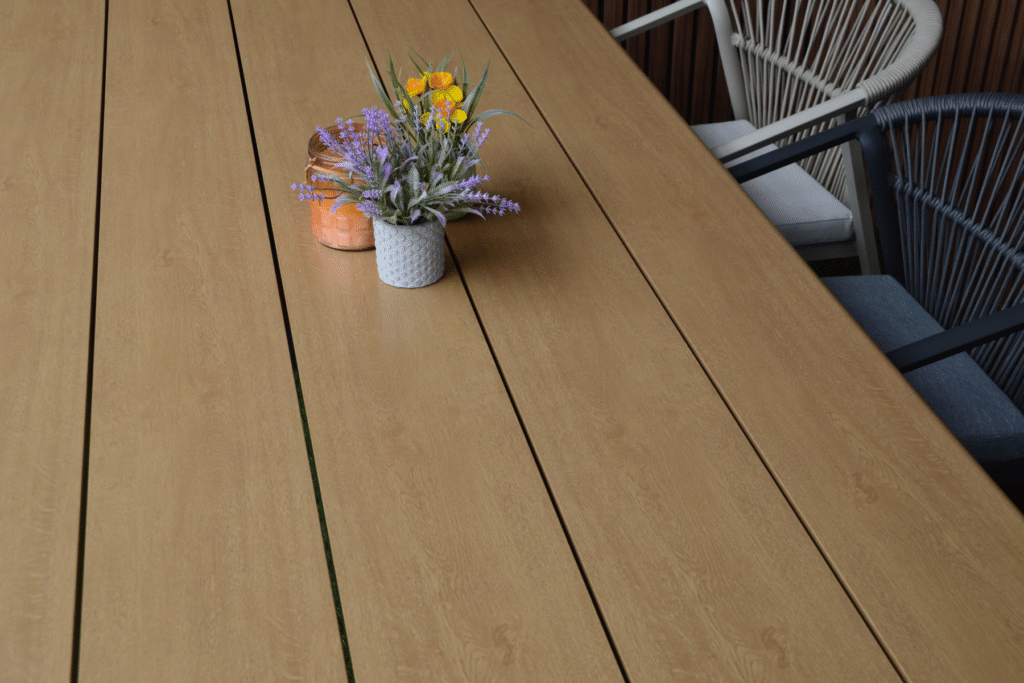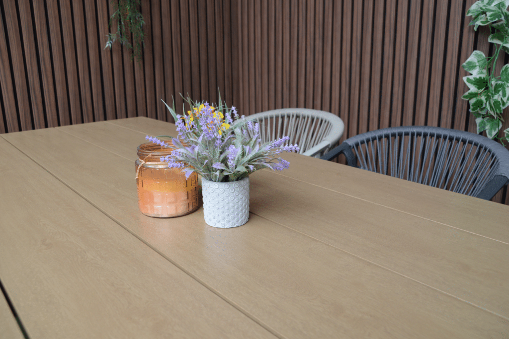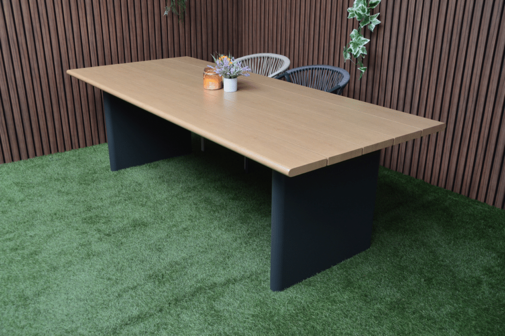 Ben je op zoek naar een ruime tuintafel met een warme uitstraling? De Riviera Antraciet/Hout is een echte eyecatcher in elke tuin. Met een royaal formaat van 240x100cm biedt deze XL tuintafel plek voor 8 tot 10 personen. De combinatie van robuuste dichte poten met het natuurlijke houtlook tafelblad geeft je tuin direct een luxe en moderne sfeer.